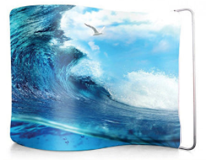 The tension fabric system comes in straight, curved, S shape, and U shapes, held in place with simple lightweight framework that clicks together effortlessly. 1 1/4″ anodized snap tube aluminum frame system with pillow-case polyester fabric graphics in sublimation print. Fire retardant polyester fabric is also available. Comes with a carrying bag. Lights are optional. Indoor use only. Ask us for more sizes.